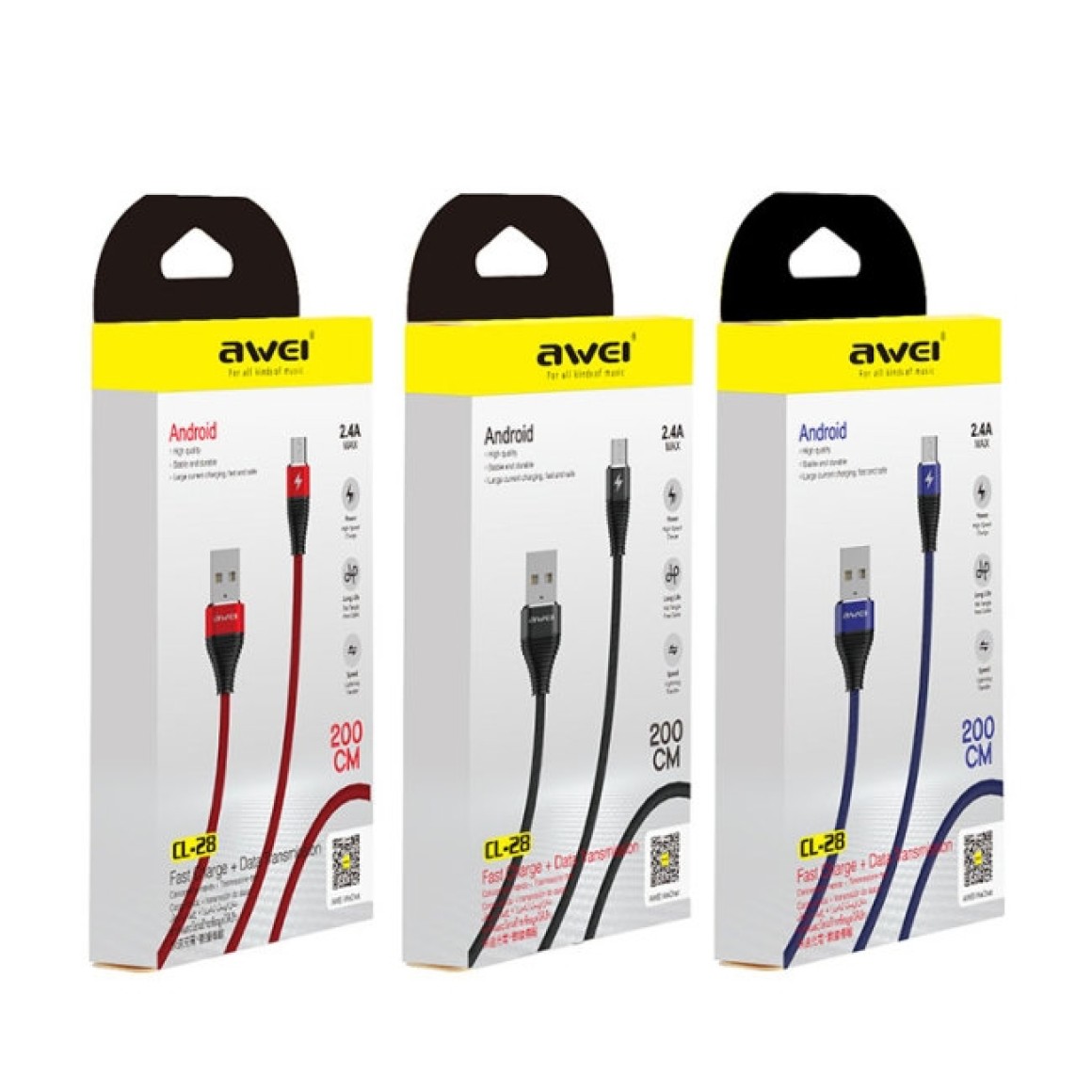Cabo micro USB Awei CL-28 com material de cabo de alta qualidade durável, não é facilmente danificado. Através de um processo sofisticado, os cabos de dados da Awei garantem um carregamento rápido e uma transferência de dados estável. O adaptador é forte o suficiente para suportar a desconexão e o armazenamento repetidos. Cabo projetado com desempenho de dissipação de calor, textura anti-oxidação, o design do núcleo de cobre elétrico torna a transmissão de dados e o carregamento da bateria mais estáveis.